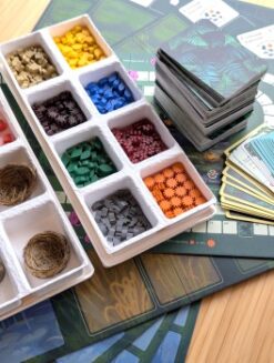 Mit wunderschöner Illustration, edlen Holzteilen, kleinen Strohnestern und abwechslungsreichen Mechanismen begeistert Biome sowohl Familien als auch Strategiespieler:innen.