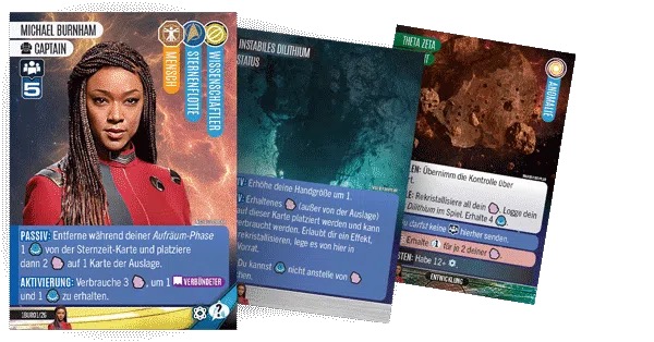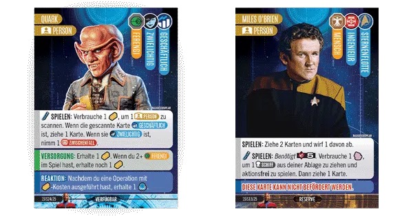 Es enthält deine Crew, Schiffe, Direktiven, Orte und Missionen – perfekt abgestimmt auf deinen gewählten Captain. Doch die mächtigsten Karten schaltest du erst im Verlauf der Partie frei: Karten aus dem Reserve- und Entwicklungs-Stapel erweitern dein Deck dynamisch, sobald es mehrfach neu gemischt wurde. So wächst deine taktische Tiefe mit jeder Runde.